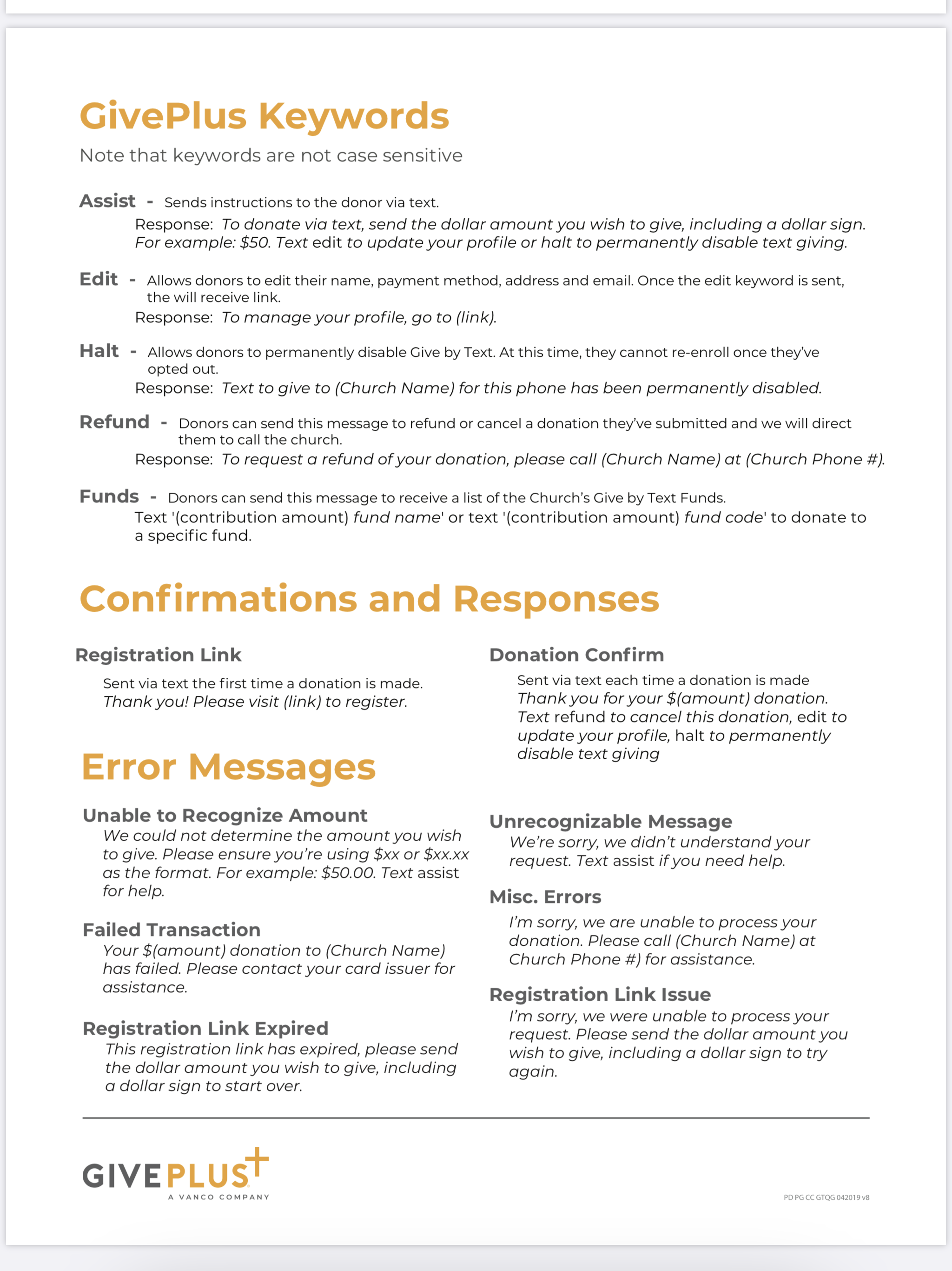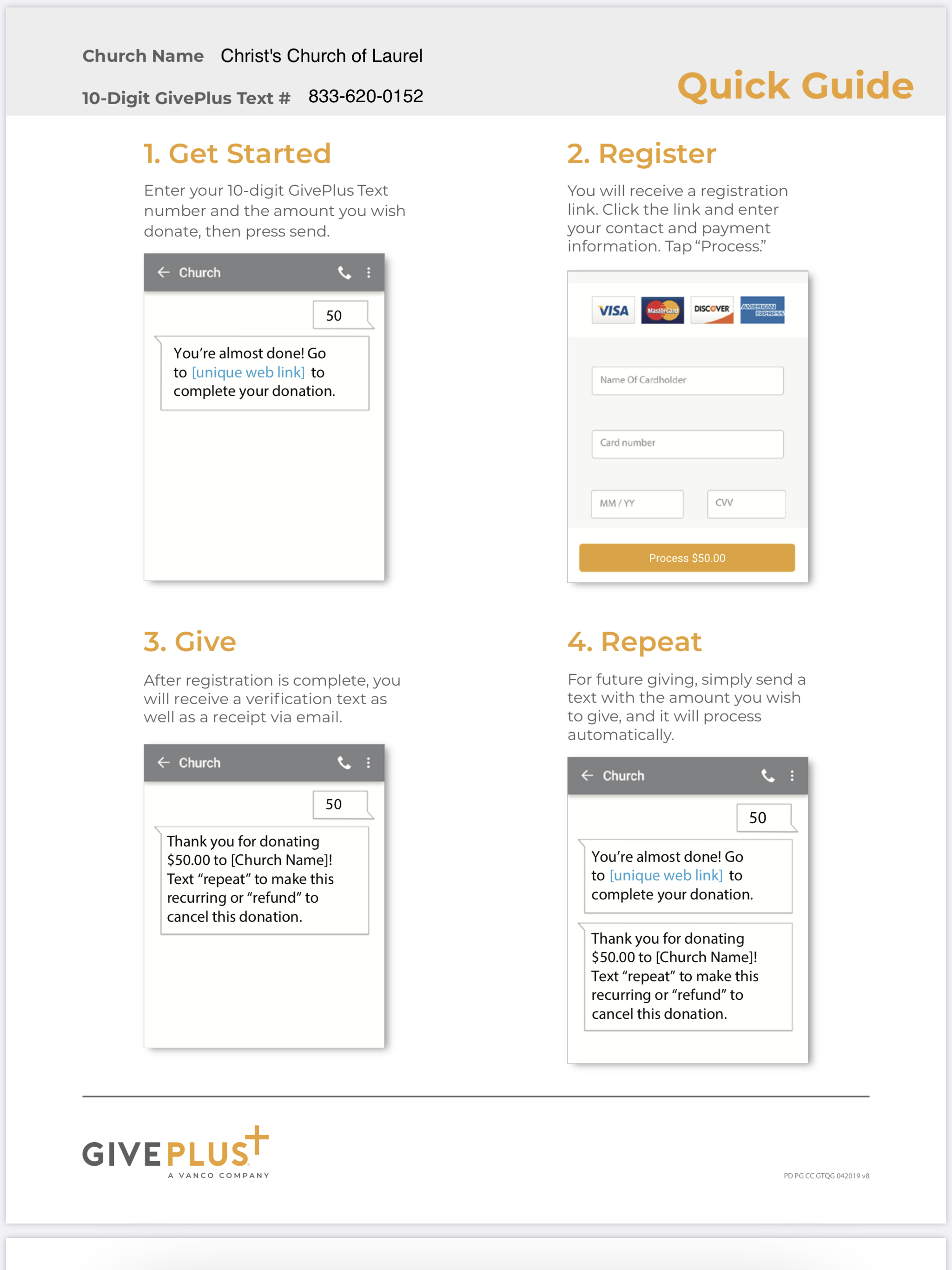 Text to Give Instructions are below! Text any number to 833-620-0152 to get started